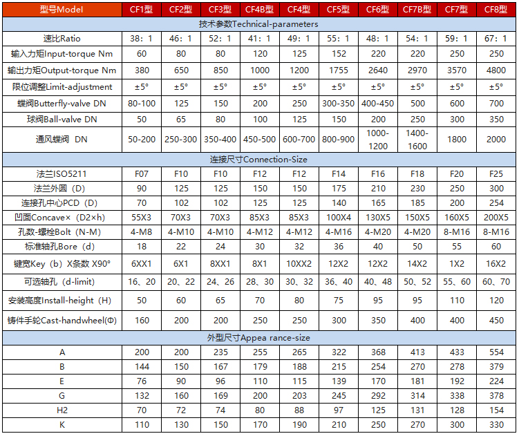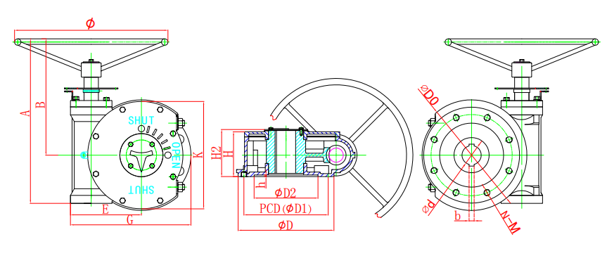 該系列蝸輪箱適用防止盜開、功能全面、形式多樣(有手輪式、手輪帶鎖式、鏈輪式等),特殊型可定做,產品共有8種型號。